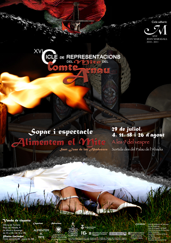 El SAT-Teatre Centre de Sant Joan de les Abadesses farà reviure, novament, la figura de l'Arnau i l'Adelaisa, la llegenda que sorgeix de les pedres del Monestir de Sant Joan de les Abadesses i que ha testimoniat la nostra història. I, a l'Arnau, el seguiran les veus de la terra, el mossos, la muller, les seves filles, el poeta i la pastora enamorada que ens redimirà amb la seva cançó. Sortirà de blanc, tal com deia el nostre Maragall. Tot blanc, tots blancs, tots atemporals i infinits, tots per encabir-los a cada episodi dels nostres avantpassats i tots per projectar-los a les generacions venidores. Acoloreix-los amb la teva imaginació, acoloreix-los amb les teves sensacions, amb les teves pors i amb les teves alegries. L'Arnau passeja, encara, entre nosaltres i tu el coneixes. El mite i l'home és present a les nostres vides.